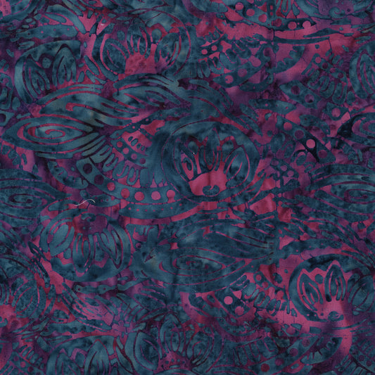 QE8: Charm - Etched Flowers - 451Q-5 Deep Sea - Batik