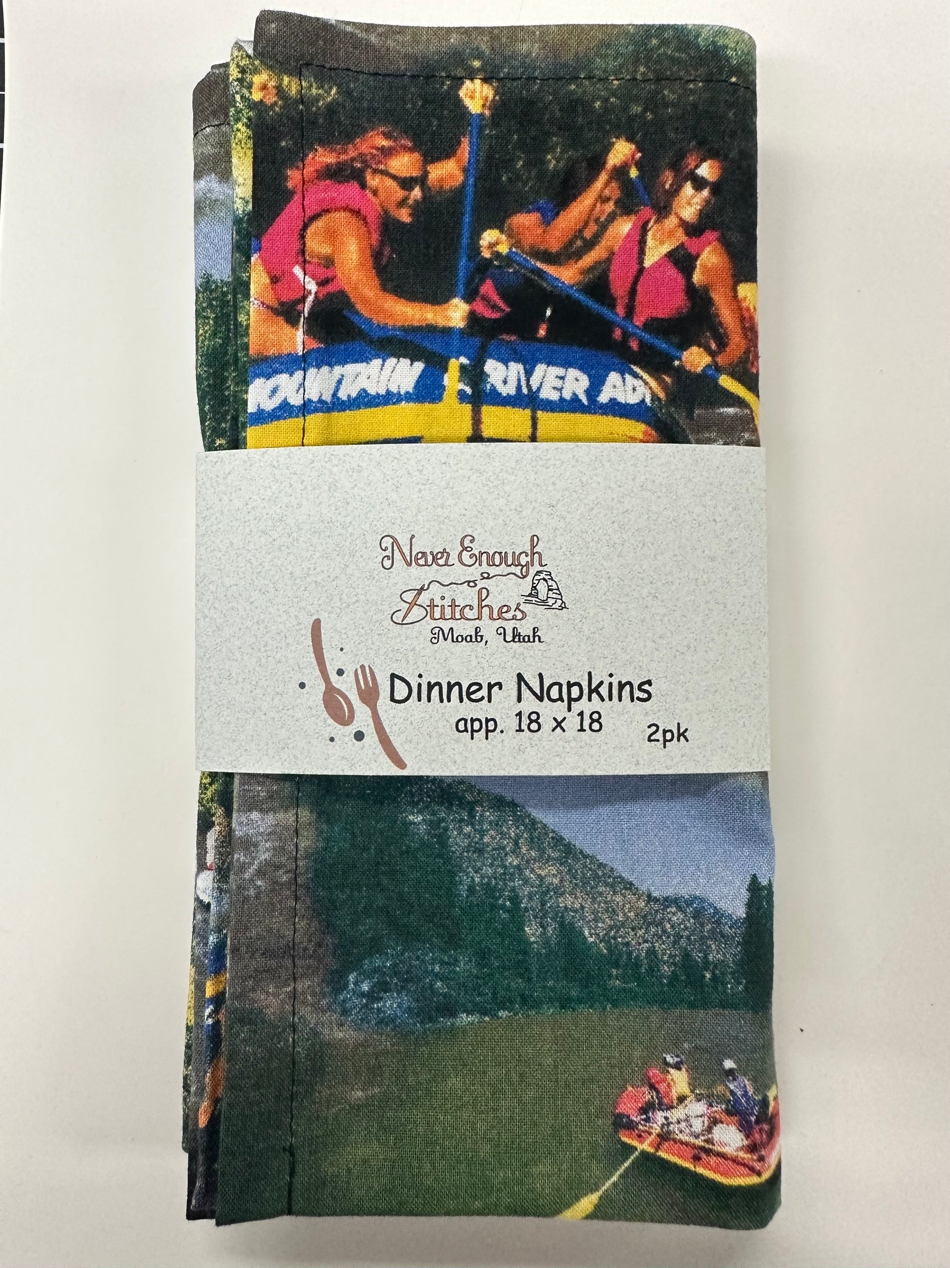 We sew our napkins right here in Moab Utah using the best quality cotton fabric available. We prewash and dry the fabric before making the napkins. This gives you an easy-care napkin which can be machine washed and dried without severe wrinkling or twisting. The napkins are expertly sewn with half-inch finished hems and mitered corners.