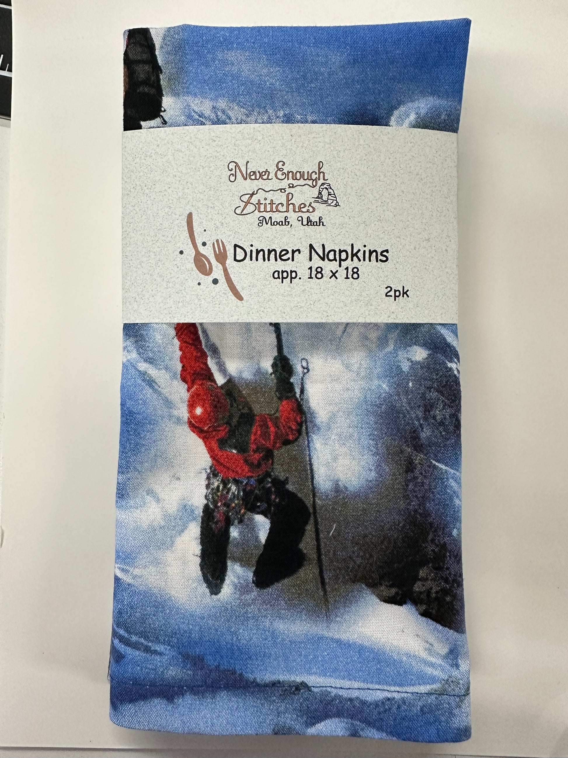 We sew our napkins right here in Moab Utah using the best quality cotton fabric available. We prewash and dry the fabric before making the napkins. This gives you an easy-care napkin which can be machine washed and dried without severe wrinkling or twisting. The napkins are expertly sewn with half-inch finished hems and mitered corners.