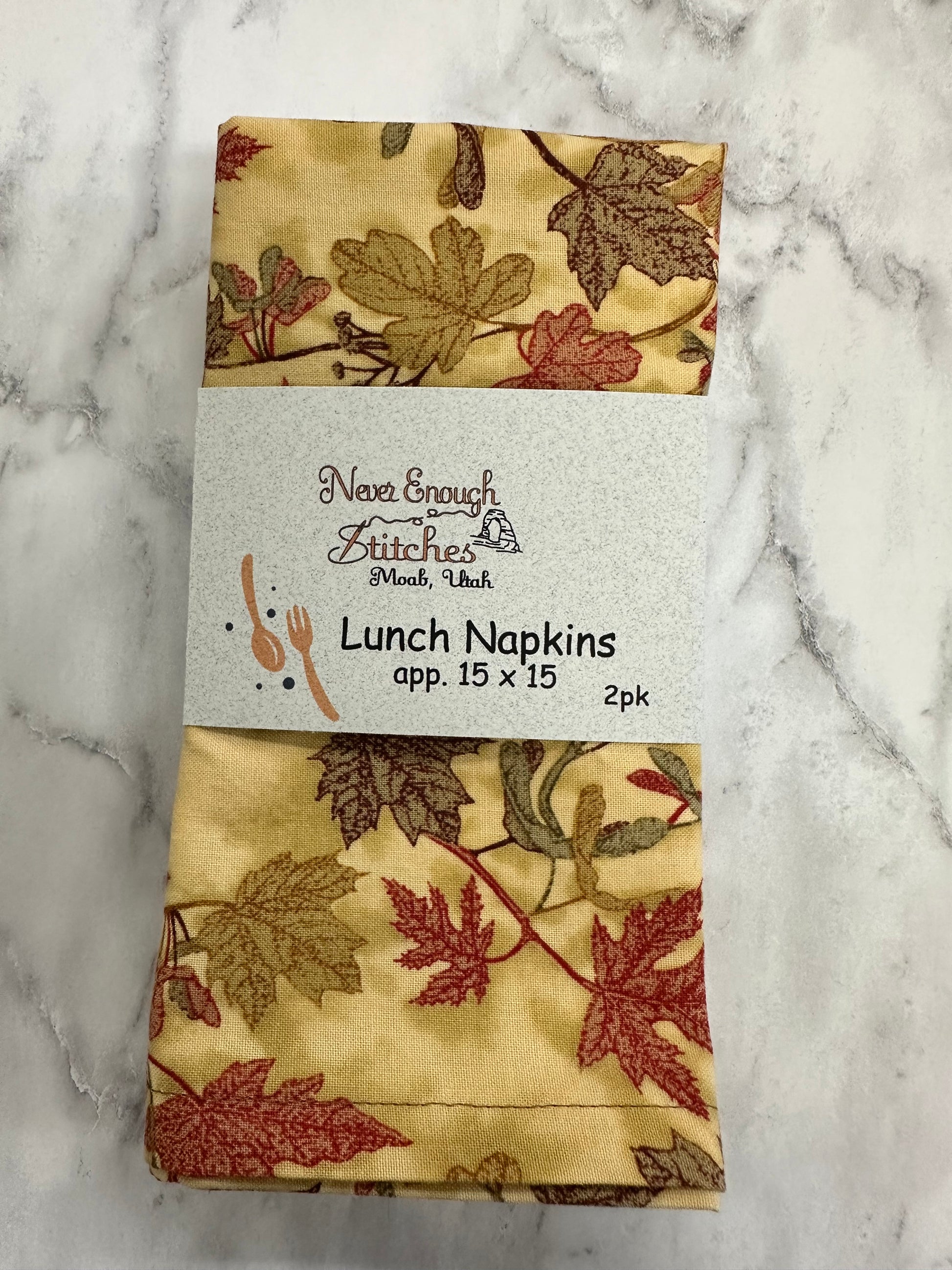 We sew our napkins right here in Moab Utah using the best quality cotton fabric available. We prewash and dry the fabric before making the napkins. This gives you an easy-care napkin which can be machine washed and dried without severe wrinkling or twisting. The napkins are expertly sewn with half-inch finished hems and mitered corners.