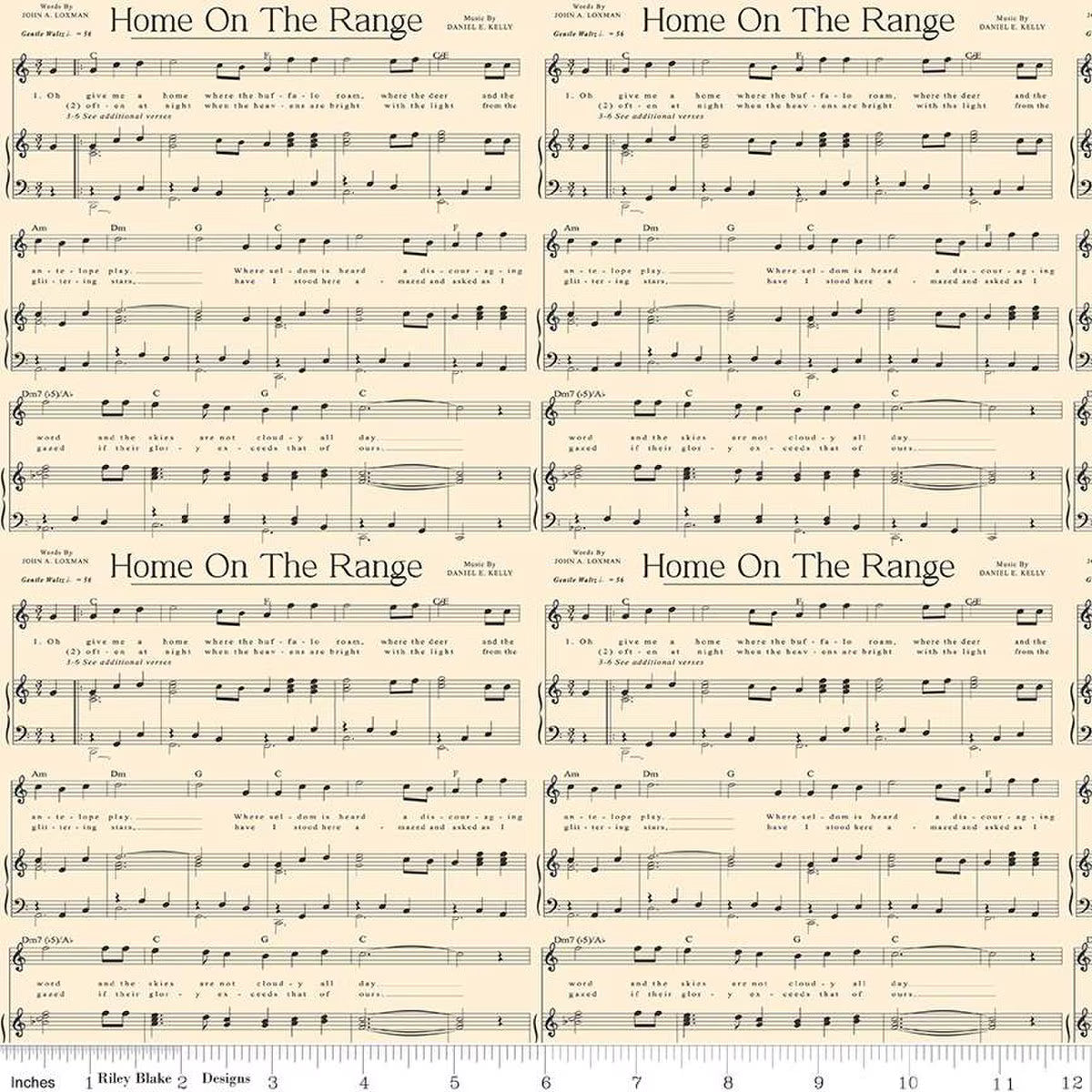 Item Description Cowboys by Echo Park Paper Co. for Riley Blake Designs is great for quilting, apparel and home decor. This print features sheet music for Home on the Range.