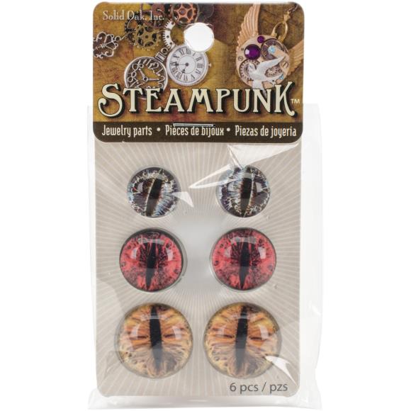 CNSolid Oak-Steampunk Acrylic Accents: Dragon Eyes Earthtones. Steampunk is a synthesis of Victorian and the machine age. Solid Oak makes it easy to create amazing, unique jewelry and accessories in the Steampunk tradition- without scavenging through yard sales and flea markets for interesting parts! This 3-1/2x1-3/4 inch package contains six acrylic dragon eye pieces in an assortment of sizes. Imported.