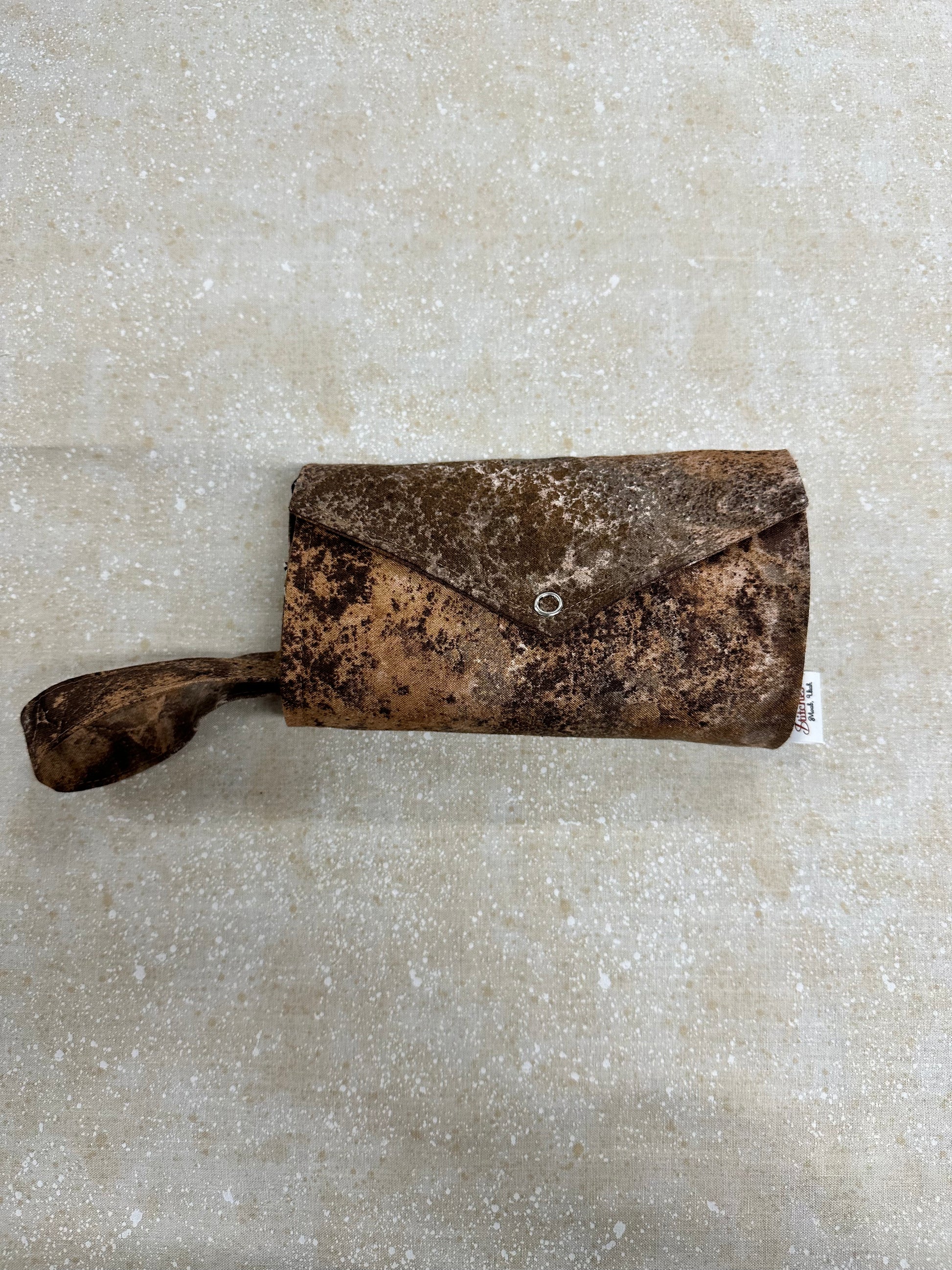 Pockets on the inside & outside. Snap closure.