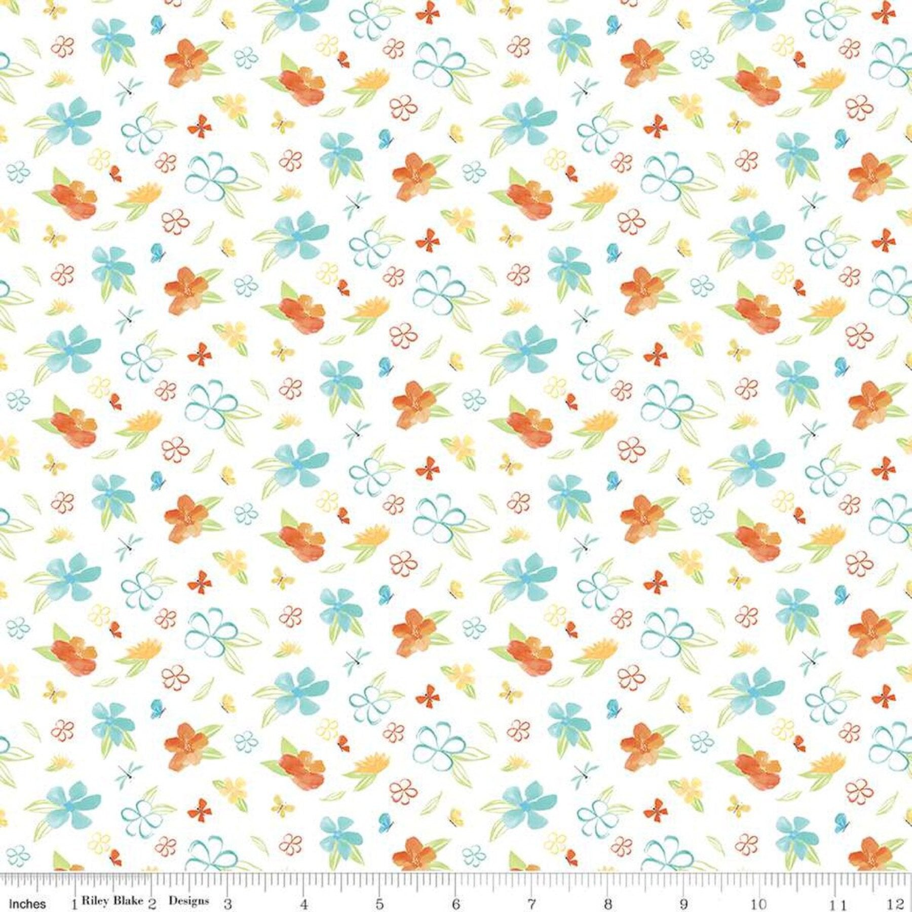Item Description: Happy at Home by Tara Reed for Riley Blake Designs is great for quilting, apparel and home decor. This print features flowers, butterflies, and dragonflies.