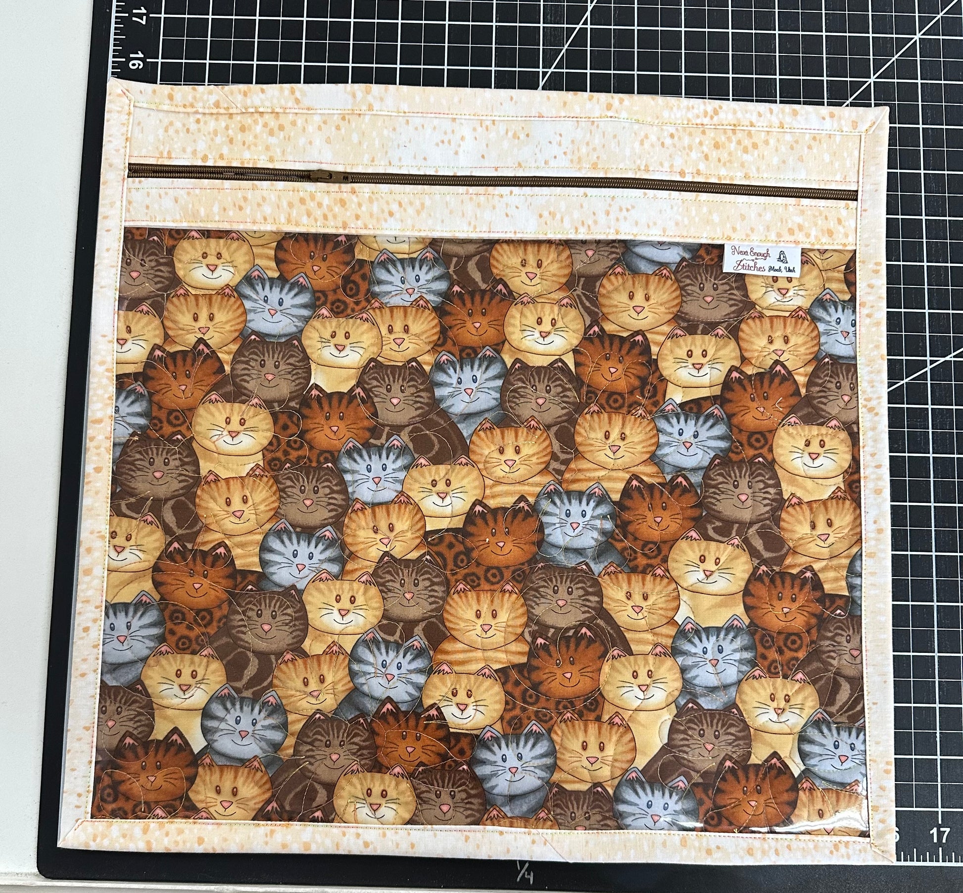 Great for keeping your projects nice and organized! Vinyl front with a zipper. May or may not have a handle, please look at the back of the bag for indication of handle.