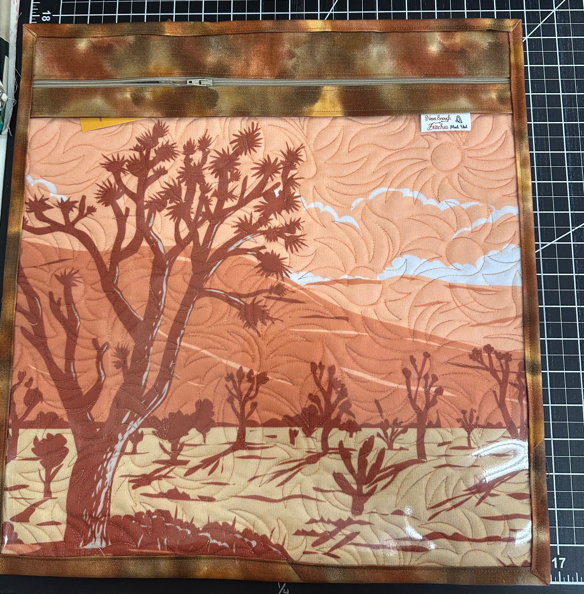Great for keeping your projects nice and organized! Vinyl front with a zipper. May or may not have a handle, please look at the back of the bag for indication of handle.