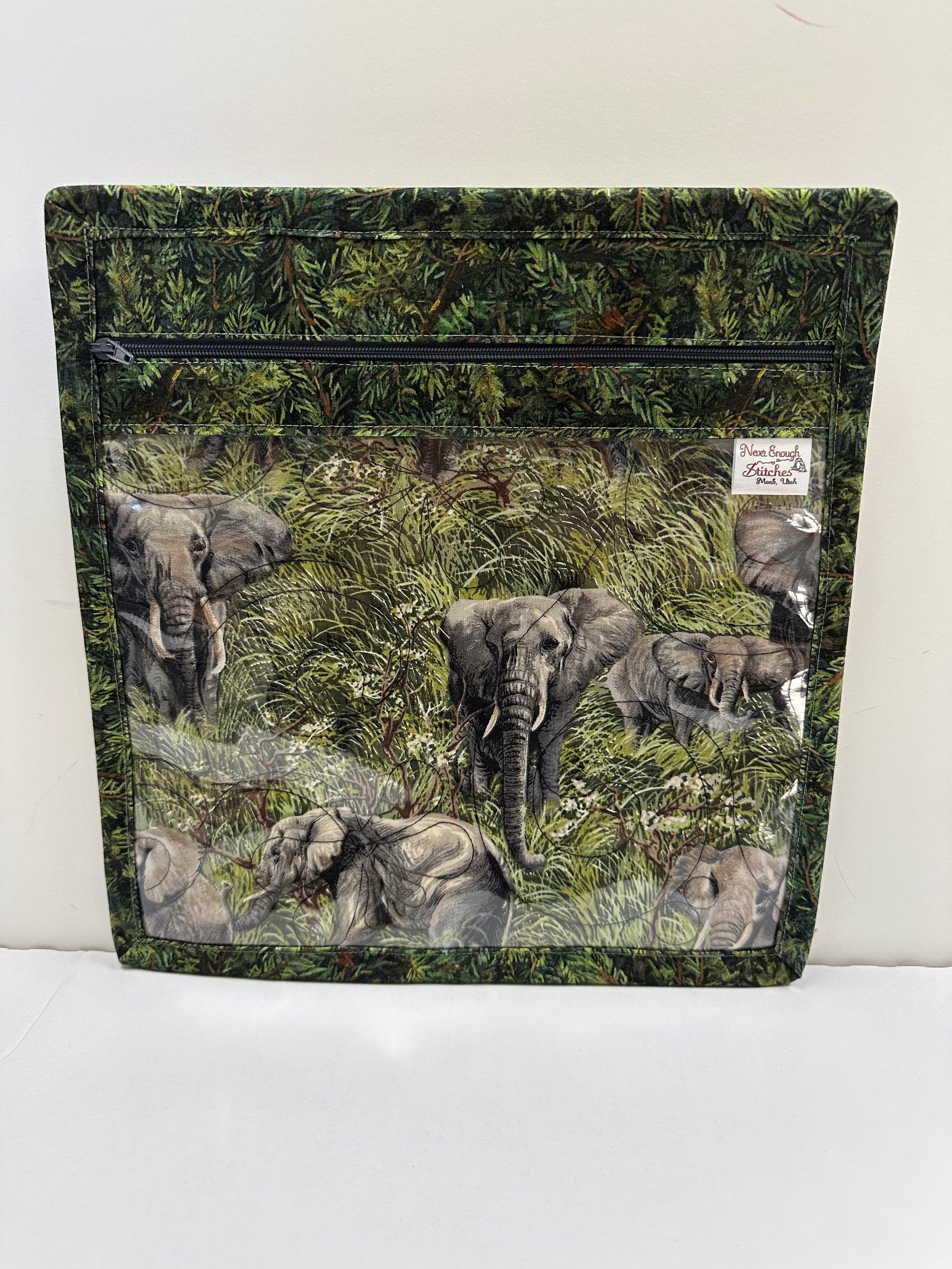 Great for keeping your projects nice and organized! Vinyl front with a zipper. May or may not have a handle, please look at the back of the bag for indication of handle.