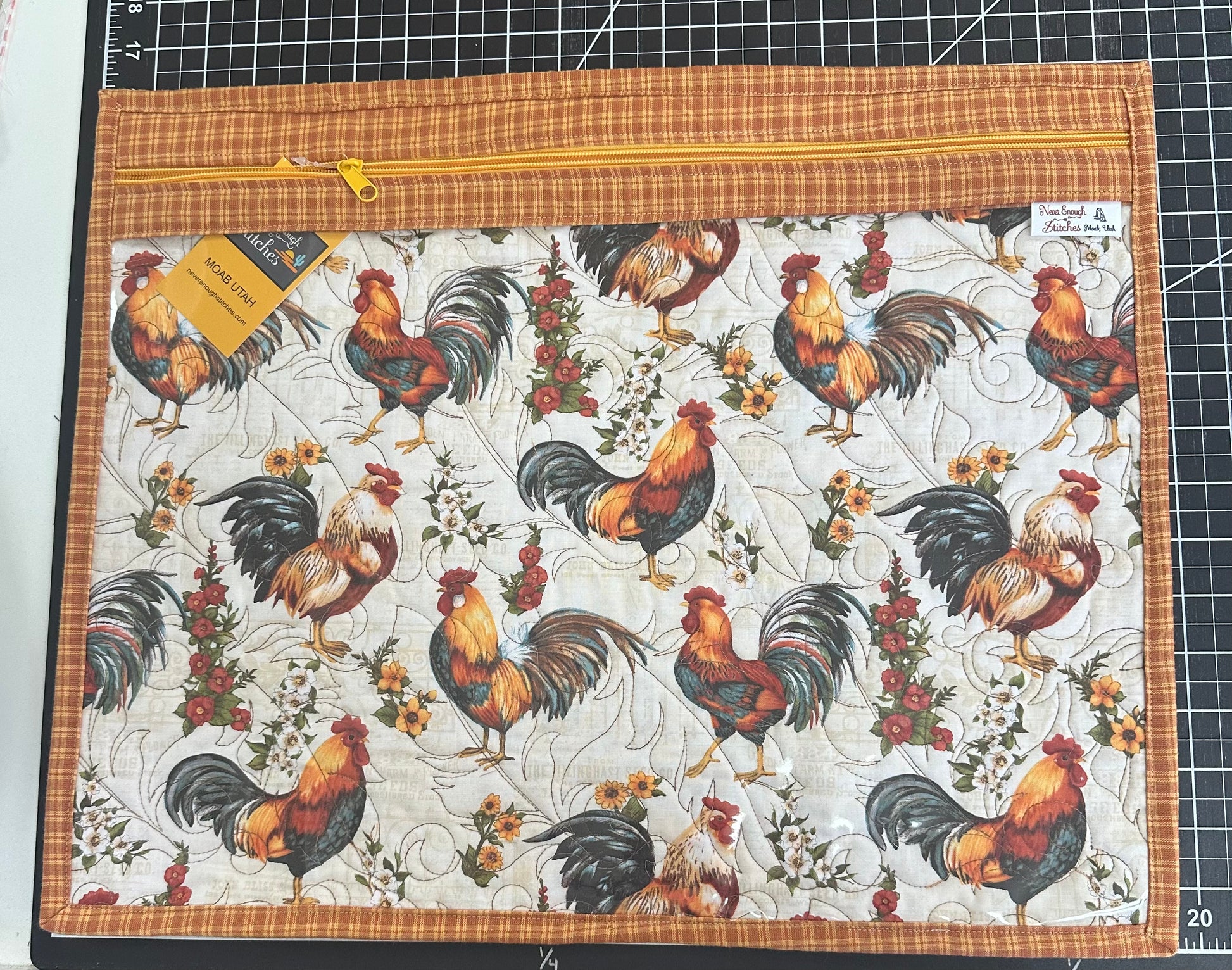 Great for keeping your projects nice and organized! Vinyl front with a zipper. May or may not have a handle, please look at the back of the bag for indication of handle.