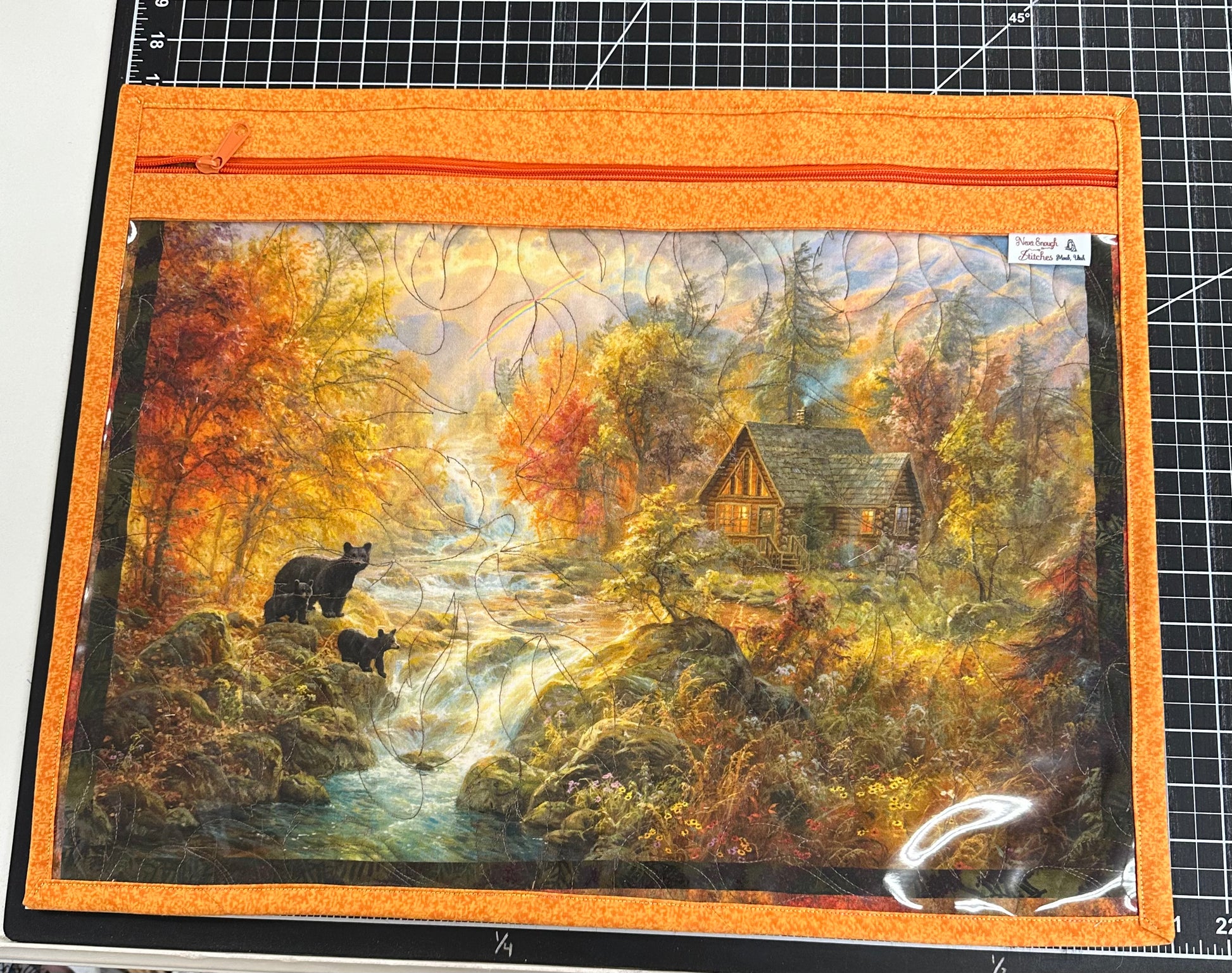 Great for keeping your projects nice and organized! Vinyl front with a zipper. May or may not have a handle, please look at the back of the bag for indication of handle.